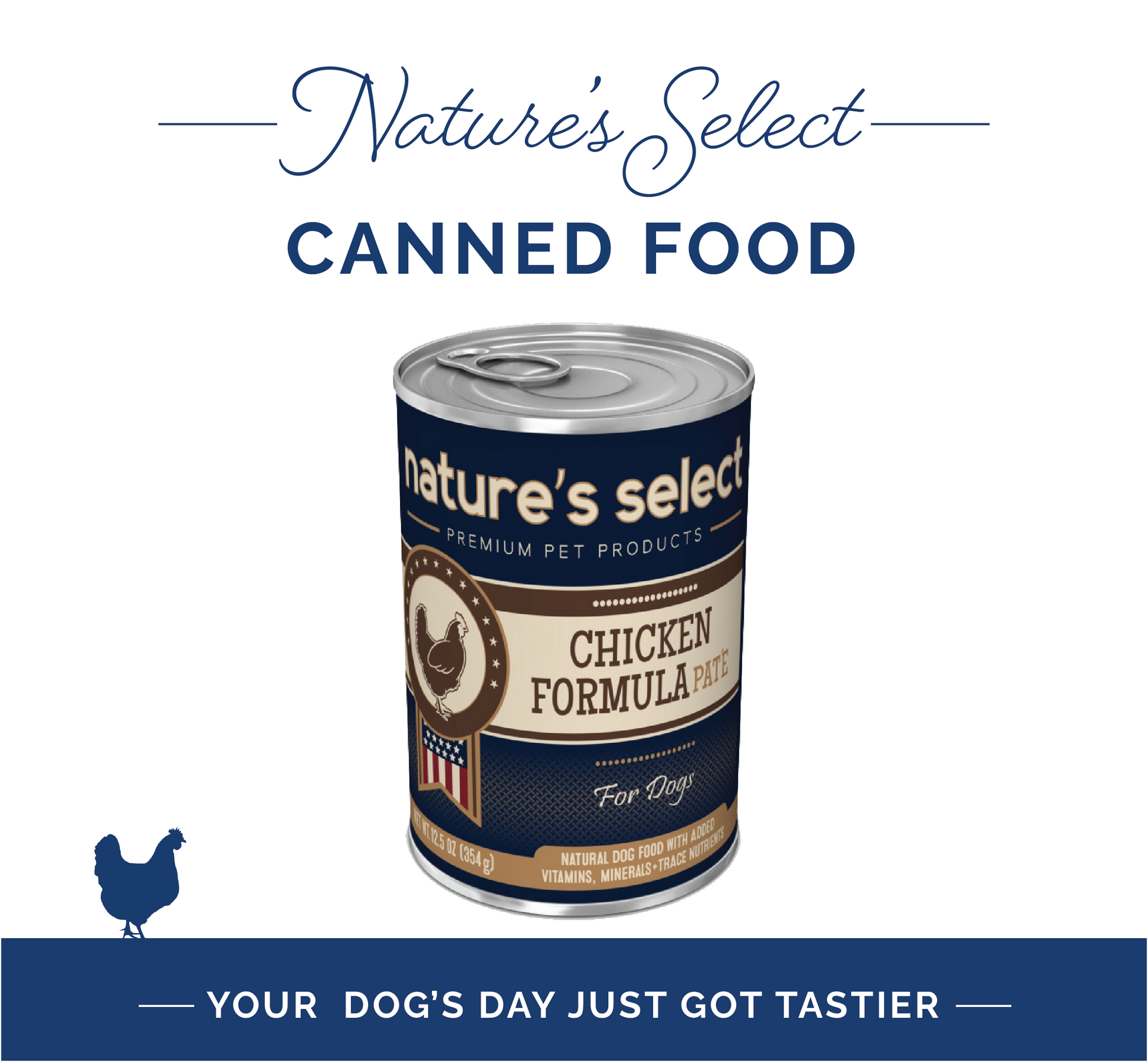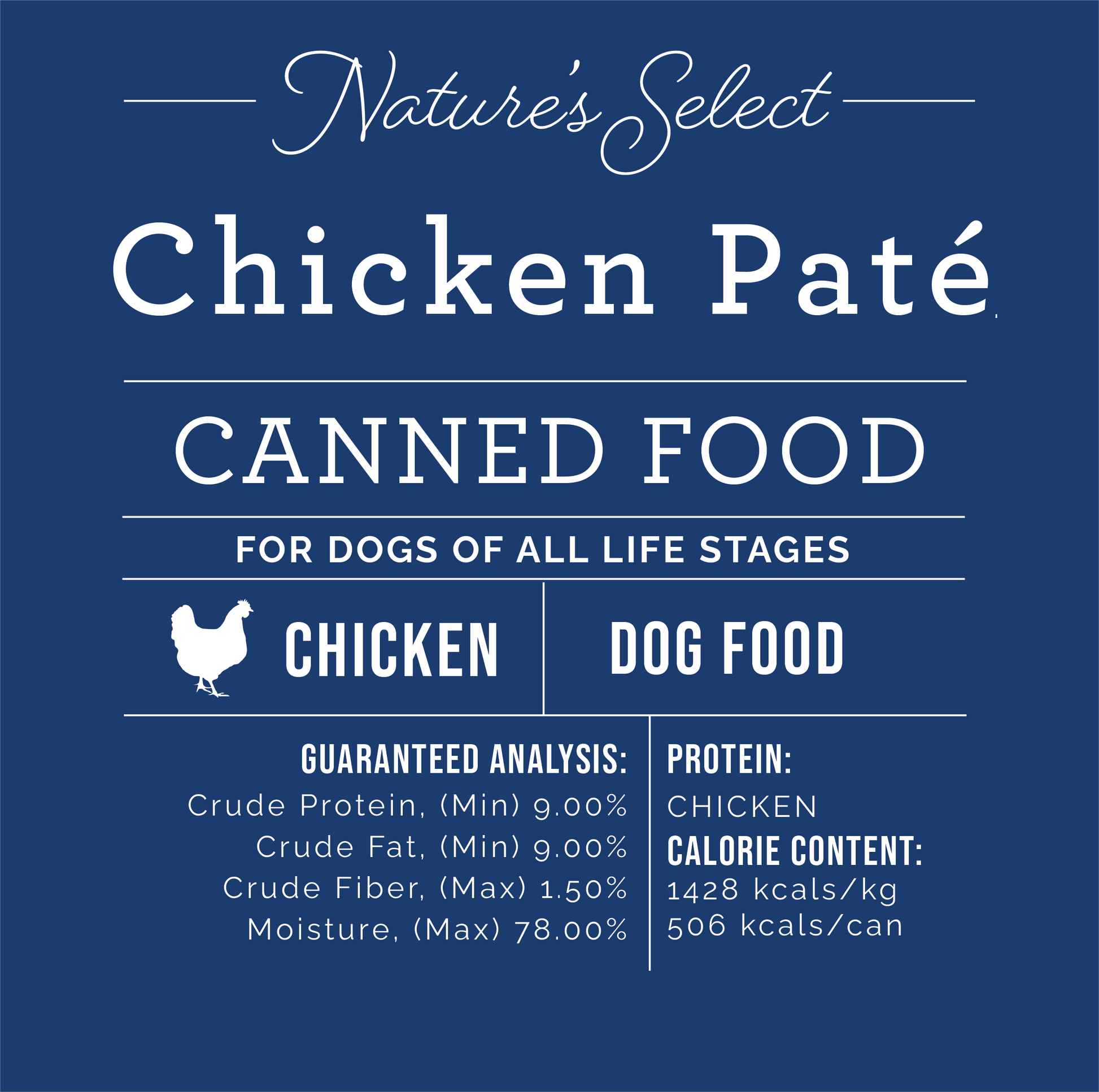 AAFCO Statement Nature's Select Chicken Pate Canned Dog Food is formulated to meet the nutritional levels established by the AAFCO dog food nutrient profiles for healthy maintenance.