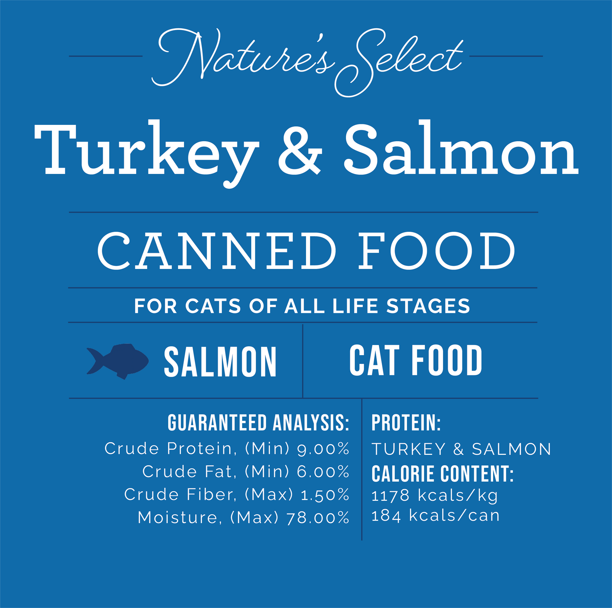 Your cat will love our Nature's Select Canned Cat Food! Now available in our exclusive Nature's Select formula: Turkey & Salmon Dinner for Cats