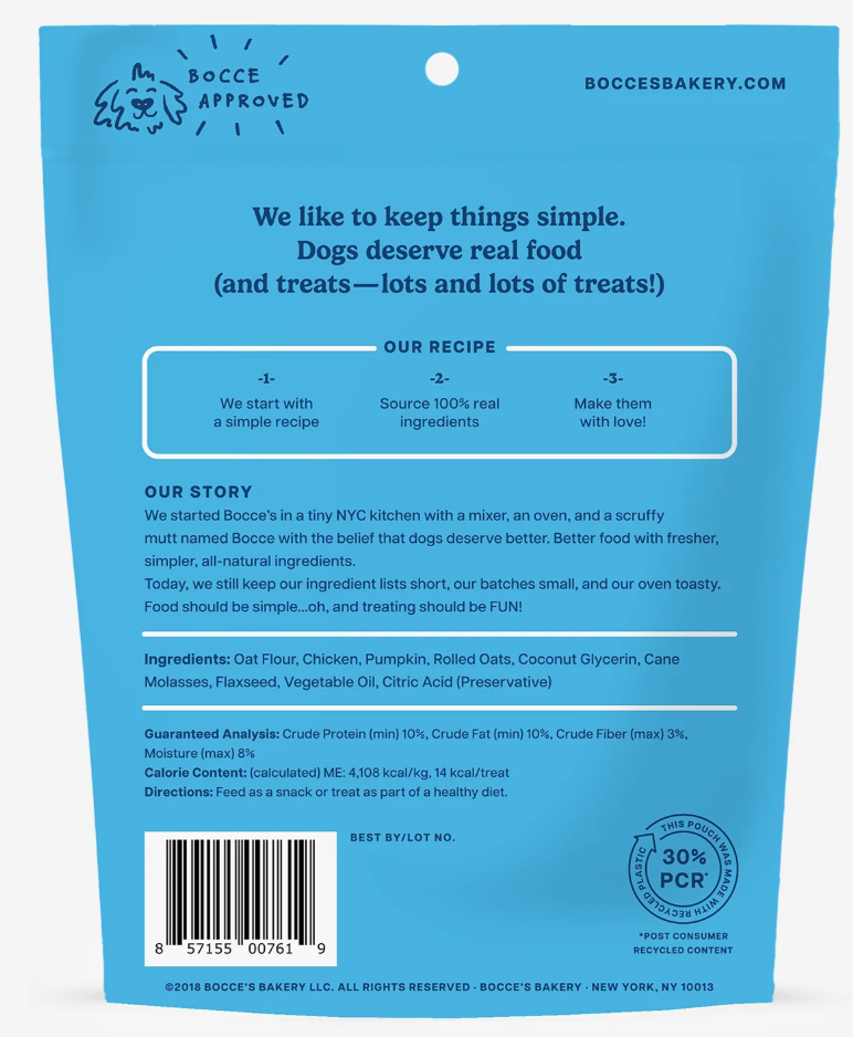 Upgrade treat time by rewarding your canine companion with Bocce’s Bakery Sunday Roast Chicken & Pumpkin Recipe Soft & Chewy Dog Treats! These goodies are oven-baked in the USA with all-natural, locally sourced ingredients and have a soft and chewy texture that's paw-fect for older pups.
