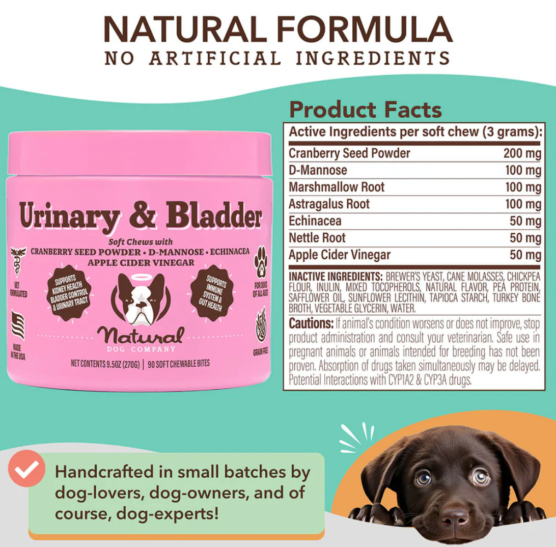 Each Urinary & Bladder soft chew contains a vet-formulated blend of premium active ingredients, each chosen for its unique benefits. Key ingredients for this chew include: